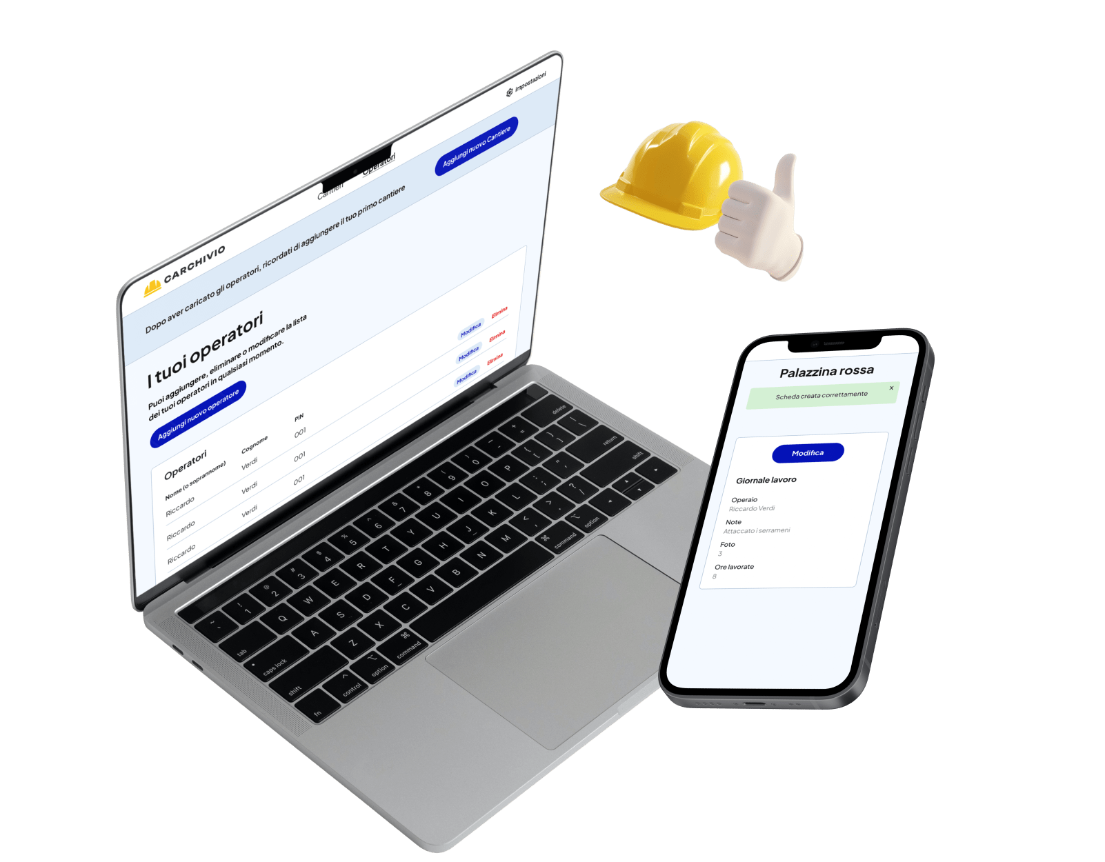 CARCHIVIO salva tutte le ore lavorate da ogni operaio, giorno per giorno. A fine cantiere hai il totale pronto, senza calcoli o fogli Excel.